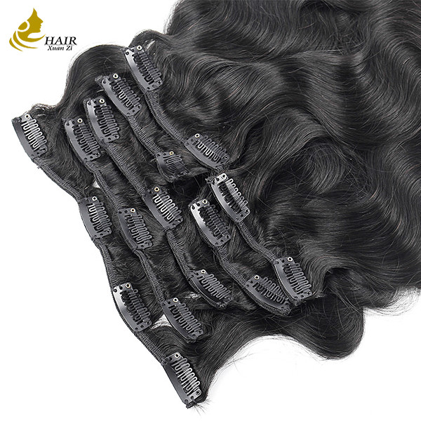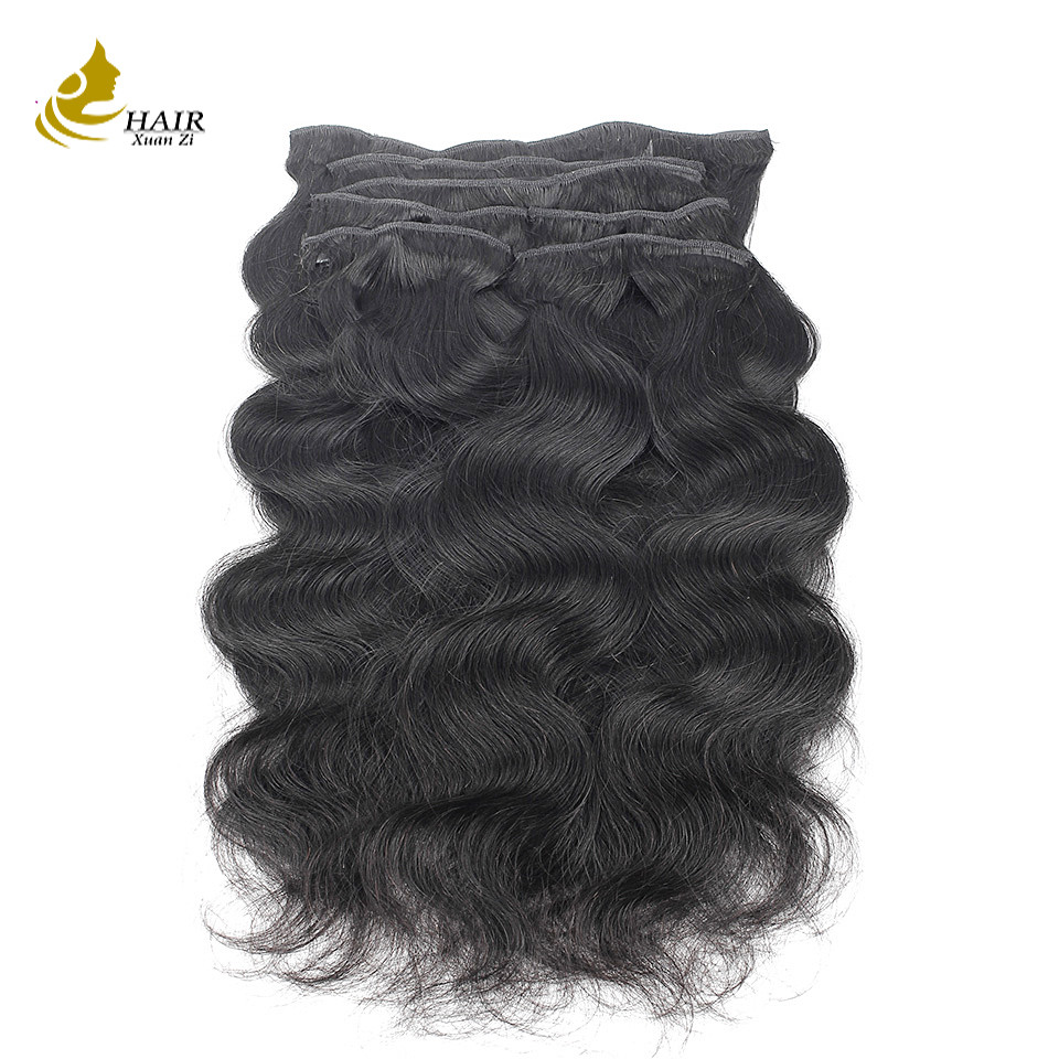 100% Rambut Manusia Brasil Clip Perawan Unprocessed dalam Ekstensi Rambut