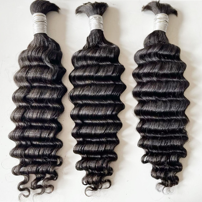 Double ditarik Deep Wave Human Hair Bulk untuk memintal Hitam alami